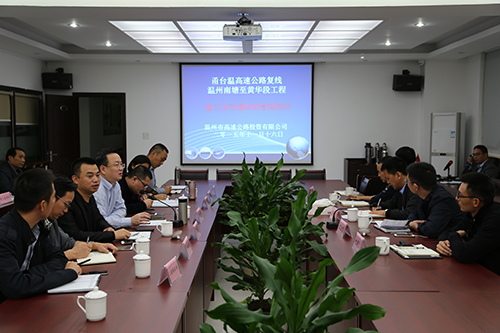 2015年11月16日下午,高投公司组织召开施工及交通组织管理专题对接会。高速交警温州支队支队长王幸微,副支队长沈汝宽、直属大队大队长朱昌戏,集团董事长秦肖,集团总工程师、高投公司总经理周列茅,常务副总经理刘钱、副总经理叶春及监理、施工单位主要负责人参加了会议。