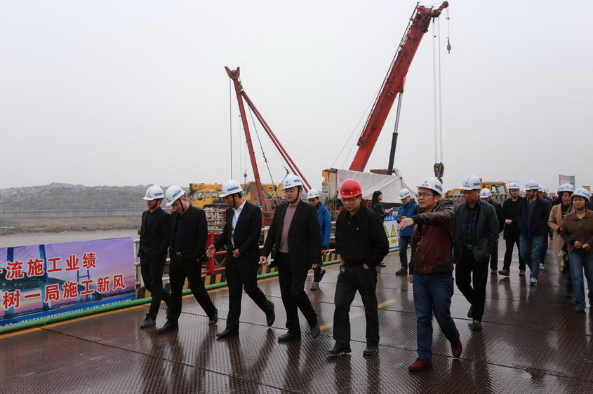 楼晓寅副书记一行实地察看了鳌江特大桥建设工程的施工现场,听取了项目负责人对当前工作进展情况和下步推进计划等工作汇报,他对鳌江特大桥建设所取得的成绩表示肯定,并对下步工作提出要求,一是建立健全奖罚分明的激励机制,明确责任,细化分工,坚持以制度管人管事,靠机制建设抓好班子及队伍建设;二是注重精细化管理,科学合理安排施工工序,在建设标化工地和平安工地的过程中,进一步思考如何将标准化施工转化为施工习惯,如何将标准化、规范化施工落实到每一位施工作业人员、贯穿到每一个施工环节;三是坚持“两手抓,两手都要硬”的工作方针,在机械设备等硬件设施完备的情况下,切实加强“软件”建设,着力提升内部管理水平,向管理要质量,向质量要效益,真正打造百年精品工程。