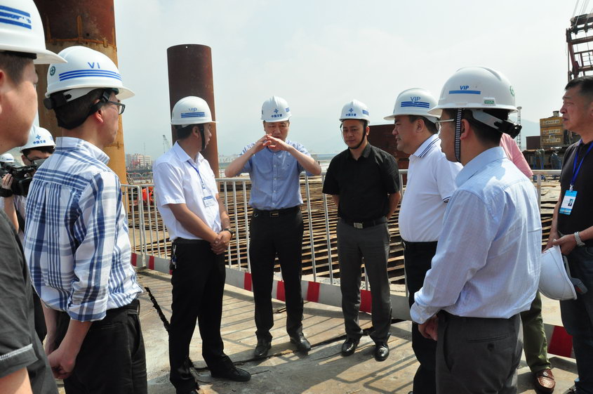 黄寿龙书记一行实地察看了鳌江特大桥施工现场,听取了项目负责人对鳌江特大桥工程概况、施工进度、施工重难点等方面的工作汇报后,对鳌江特大桥大力推进工程进度取得的成绩给予充分的肯定。同时,他表示,鳌江特大桥是甬台温高速复线平苍段项目的控制性工程,也是省市重点工程,又是平苍两县人民关注的民生工程。苍南县委高度重视,已将鳌江特大桥相关工作进展情况上报温州市委,市委也表示极大关切,并将鳌江特大桥项目列为市亮点项目。接下来,县委及“亮点项目督察组”将进一步加大对鳌江特大桥工程进展情况的关注和督查,希望项目部要继续以“育亮点、促赶超、树典型、建精品”为抓手,继续严把工程质量和安全生产关,严格安全质量管控,推进项目不断取得新进展。同时,各部门、乡镇和施工单位要多方协作,形成合力,加快协调解决存在的难题,严格按照时间节点要求,一路破难攻坚,真正将鳌江特大桥打造成样板工程。