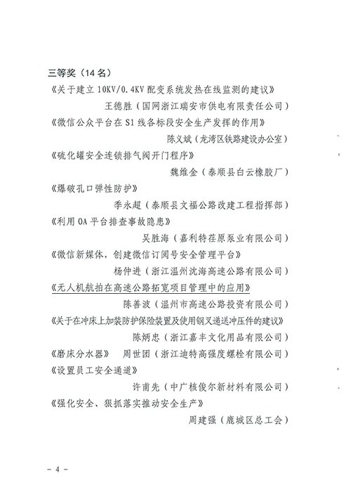 近日,市总工会传来捷报,高投公司《无人机航拍在高速公路拓宽项目管理中的应用》荣获2016年温州市职工安全生产合理化建议三等奖。