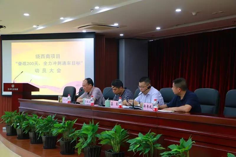 为进一步动员全体参建单位振奋精神,以决战决胜的姿态全力冲刺通车目标,6月9日,绕西南工程“奋战200天,全力冲刺通车目标”动员大会在集团11楼会议室召开。市交通运输局副局长蒋理江,集团董事长秦肖,副总经理、绕西南公司董事长管连众,纪委书记郑书讯出席。