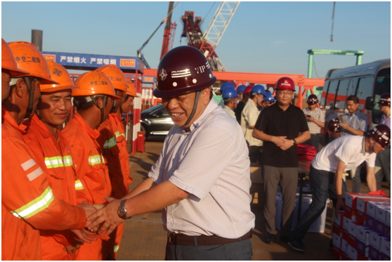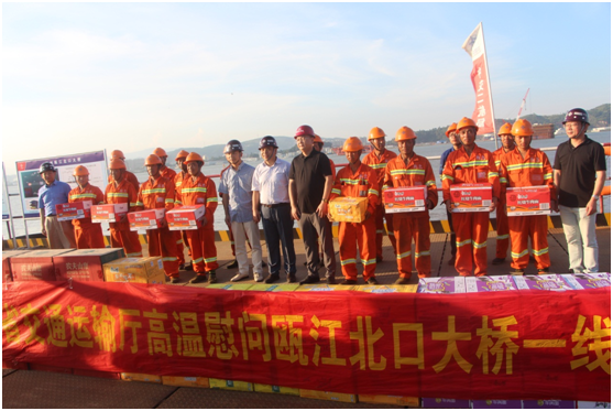 随后,督察组一行人向在高温酷暑下依然战斗在施工生产一线的建设者表示慰问,要求施工单位做好防暑工作,保障高温作业安全,叮嘱工人们要保证休息、预防中暑。