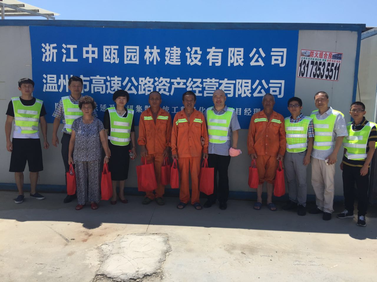 7月26日上午,集团副总经理林登荣赴经营公司所在的G15甬台温高速路大桥段和机场口绿化施工现场开展高温慰问活动。经营公司董事长刘赛、副总经理黄晟华、留敏等陪同慰问。