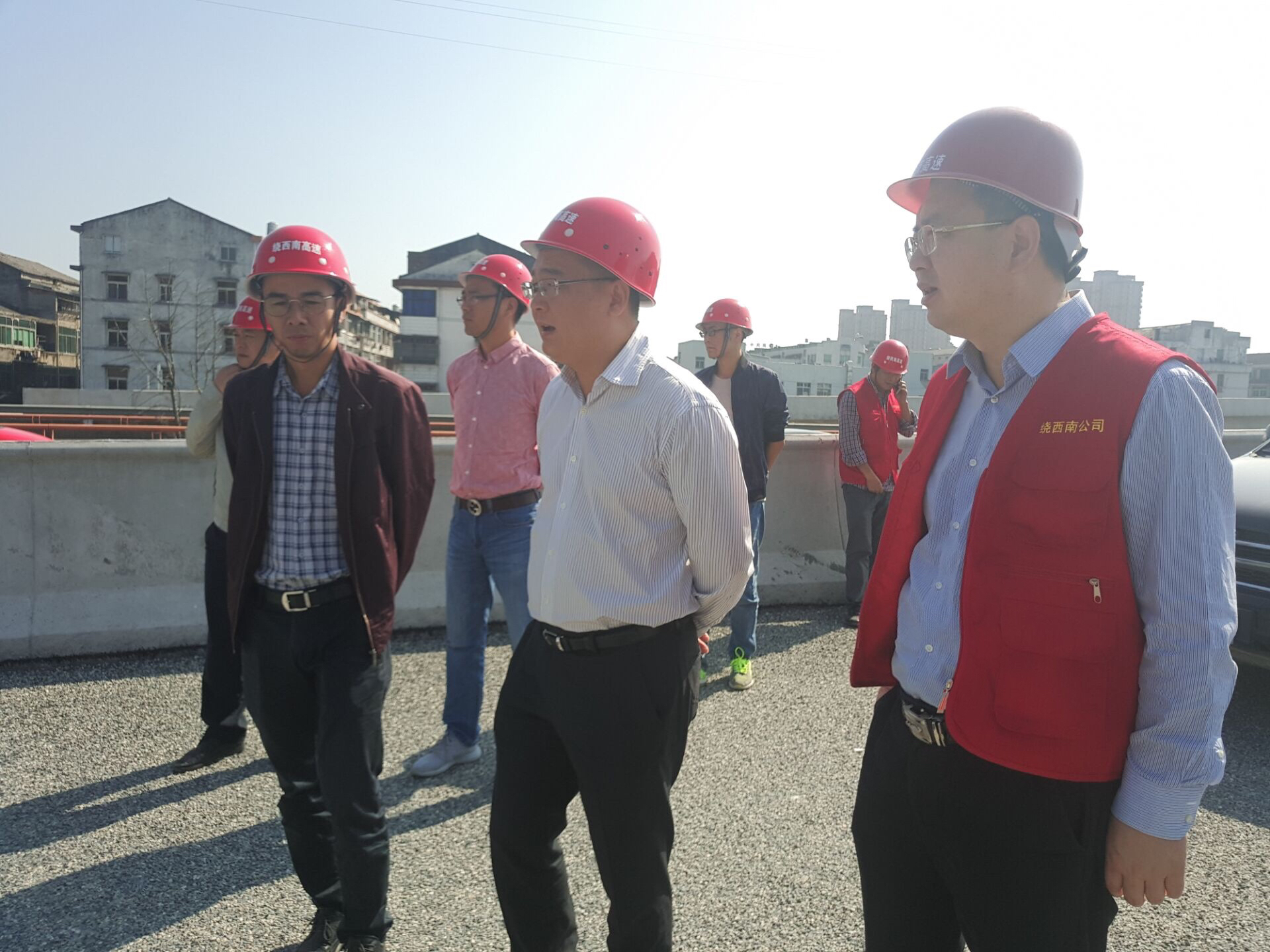 本次重点围绕全线封闭施工、隧道指示、安全防护等安全防范措施的落实情况进行严格检查,同时督查了互通、房建及其他个别卡点的施工进度。秦肖强调,面对紧迫的通车期限与严峻的安全形势,绕西南全线要提振攻坚精气神,在全力以赴加快进度的同时,必须坚守安全红线意识,恪守安全准则,真正将安全制度理解到位,将安全措施落实到位。并切实加强现场管理与施工组织,严格落实全线封闭施工制度,通过设立专职安全管理组、设置警示标牌、开展安全巡逻、规范安全物品佩戴等一系列措施,坚决杜绝引发安全事故。