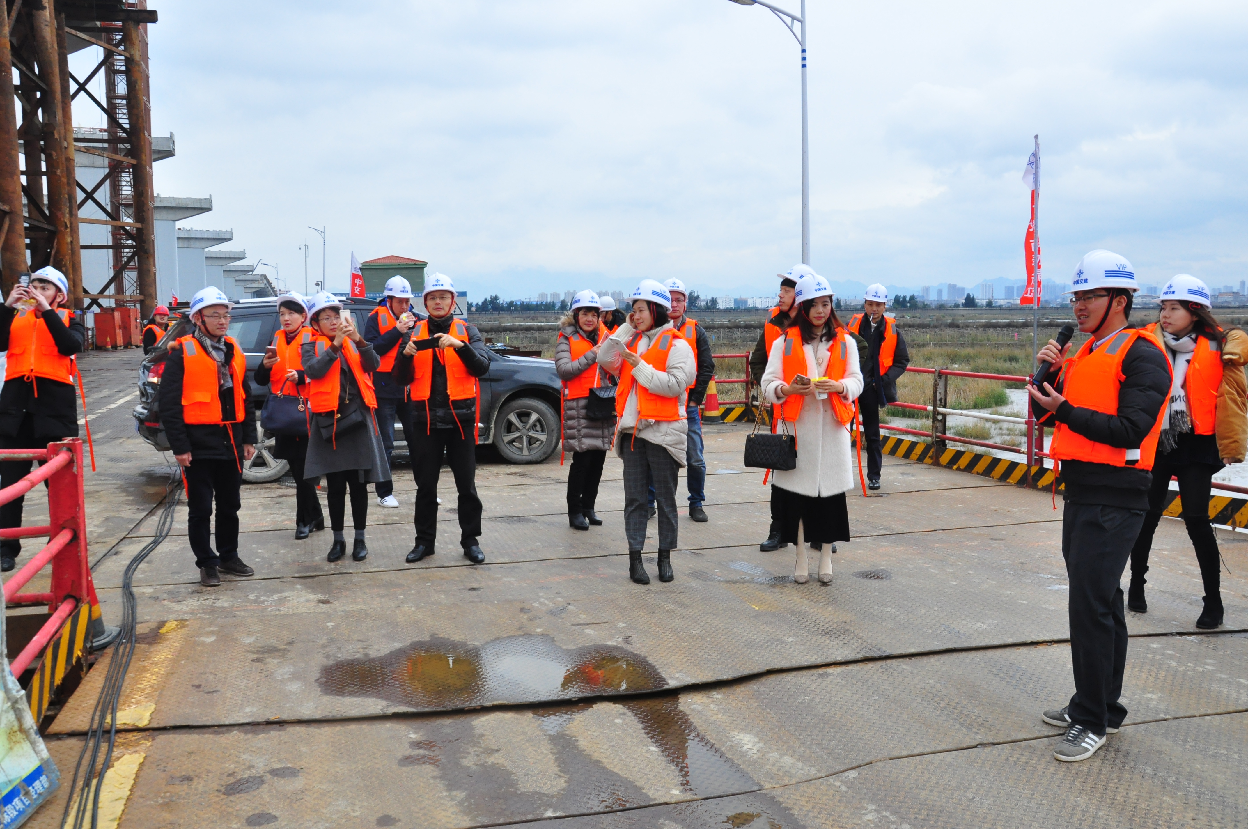 1月26日,集团邀请各大在建项目银团牵头工、农、中、交四大行赴工地现场参观。中行市分行副行长侯力辉、交行市分行副行长李桂萍、农行鹿城支行行长熊倩、工行城西支行副行长叶舟纷纷带队参加。此次活动由财管中心金震州带队,集团建管部,沈海公司相关人员陪同。