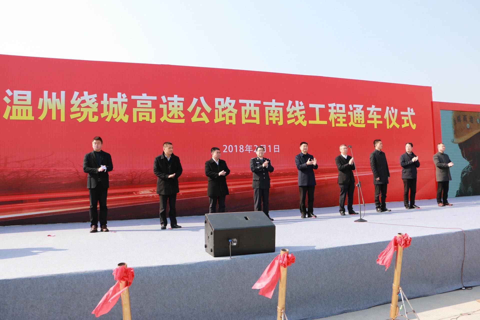 市委常委、常务副市长陈浩、副市长陈建明、省公安厅高速公路交警总队副总队长沈艾中、市政府副秘书长张本锋、市交通运输局局长董庆华、集团董事长秦肖,以及鹿城区、瓯海区、瑞安市、平阳县政府负责人出席通车仪式。市政府副秘书长彭魏滨主持仪式。