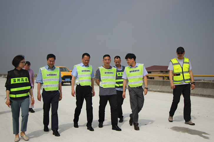 5月15日上午,市交通运输局党委副书记、副局长蒋理江一行到温州大桥督查温州大桥病害处治施工进展情况。市交投集团副总经理戴新荣,运营公司刘赛、养护中心胡永杰等陪同调研。