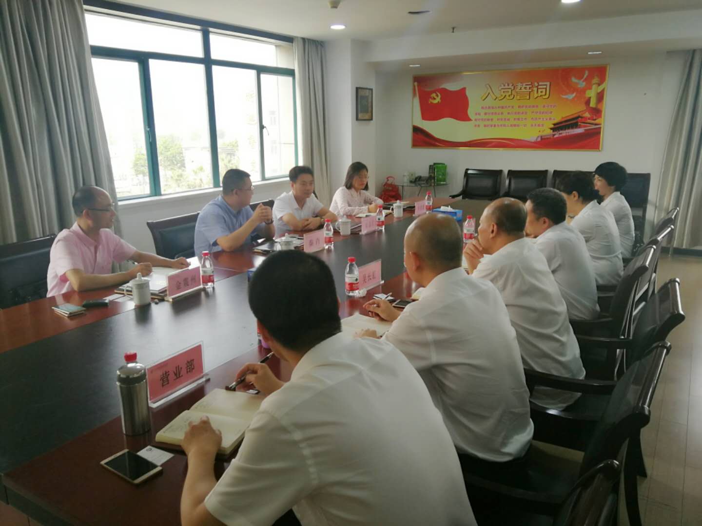 5月15日下午,集团董事长秦肖、副董事长南品仁专程到中国邮政储蓄银行温州市分行拜访,邮储行温州分行行长周明在会议室进行接待。
