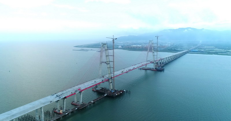 10月9日,甬台温复线灵昆至阁巷段工程飞云江跨海特大桥顺利贯通。飞云江跨海特大桥为全长40余公里的复线高架桥梁中的一段,主桥为双塔双索面的钢混叠合斜拉桥,主跨380米,主塔140米,是目前我市在建桥梁中主跨最大、塔身最高的斜拉桥,可满足3000吨级船舶通航。