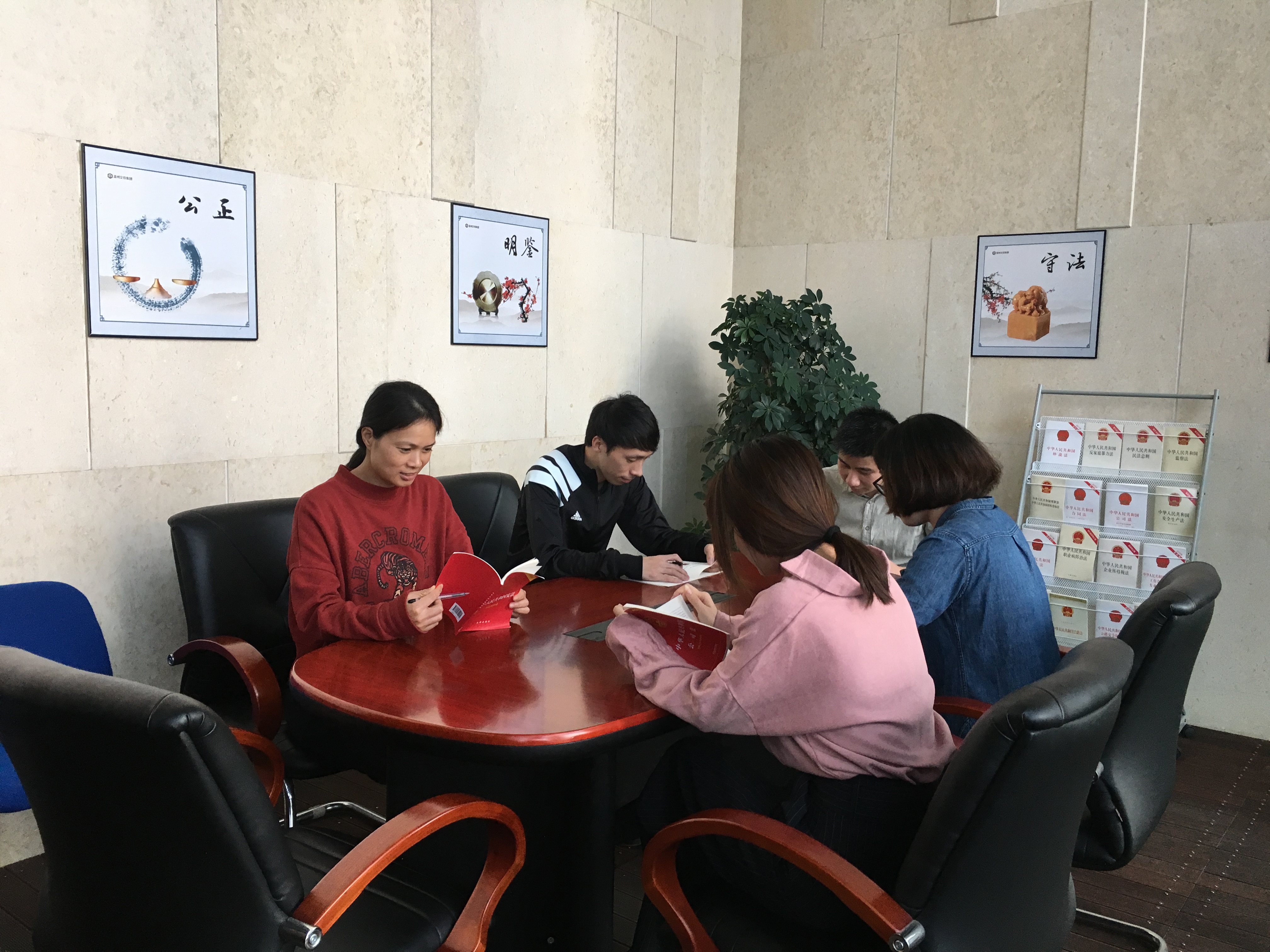 二是组织集团人员在集团十楼专设的“法律庭院”集中学习《宪法》,通过学习、讨论、交流,使充分认识宪法确立的国家根本制度、根本任务,我国的国体、政体,宪法赋予的公民基本权利和义务等基本内容。