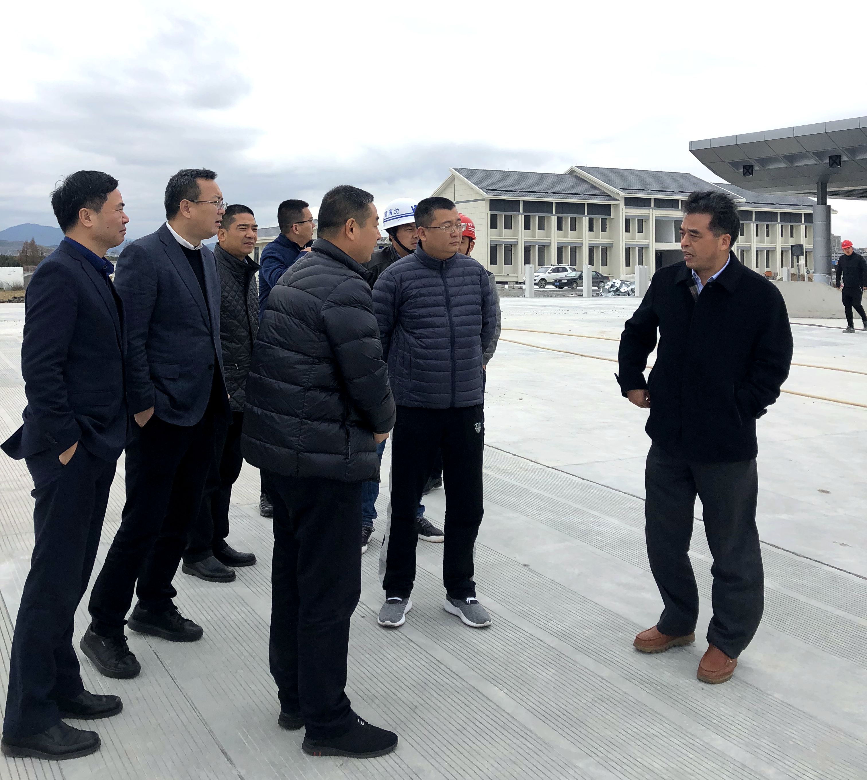 陈允法一行实地察看了黄华枢纽施工现场及收费广场,并认真听取了绕北二期工程进展情况介绍,对工程的实体质量、安全管理等方面提出了宝贵的意见和建议。