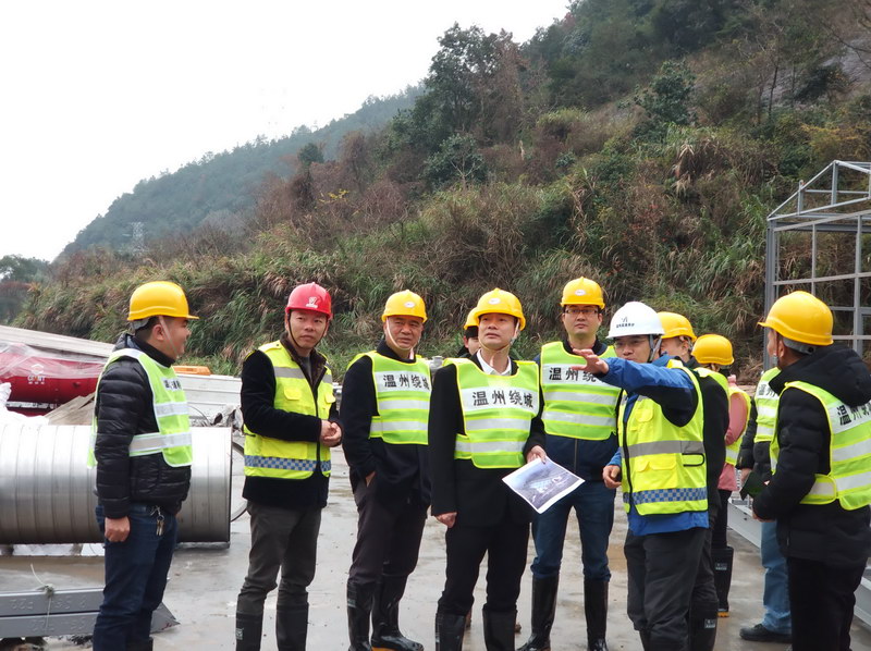 检查组一行对泽雅水库管理用房外立面装修和黄田岙养护工区进行了认真细致的排查,重点查看了施工现场安全生产情况,对施工现场的脚手架操作平台、消防器材、施工现场临时用电设施管理情况进行了全面排查,并现场纠正违章作业行为。同时,对养护工区拌合楼安装进展进行了深入了解。