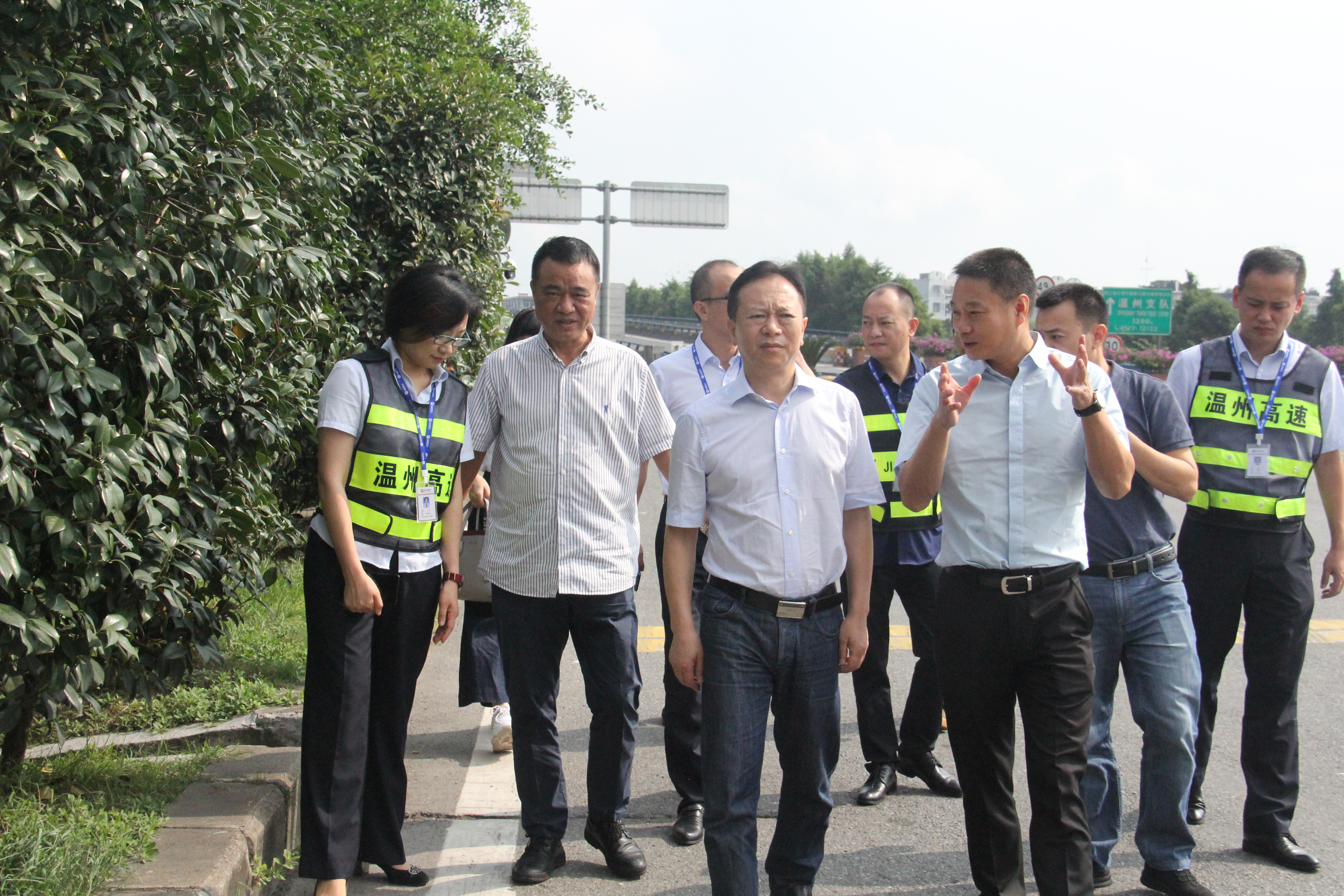 9月10日,市国资委党委书记、主任刘峰带队赴交投集团温州东收费站、瓯江北口大桥项目部开展安全生产督查,集团总经理南品仁、总经济师王道川,运营公司刘赛、瓯江口大桥公司郑锋利等陪同。