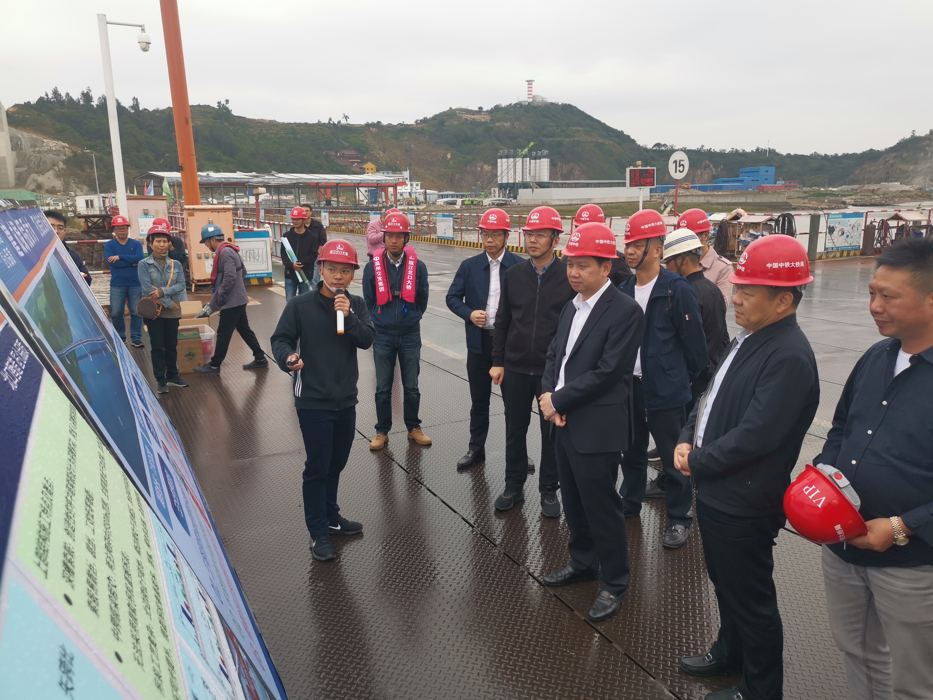 10月22日下午,乐清市市委书记方晖一行赴温州瓯江北口大桥土建一标现场督查指导工作,市交发集团副总经理郑锋利等陪同。