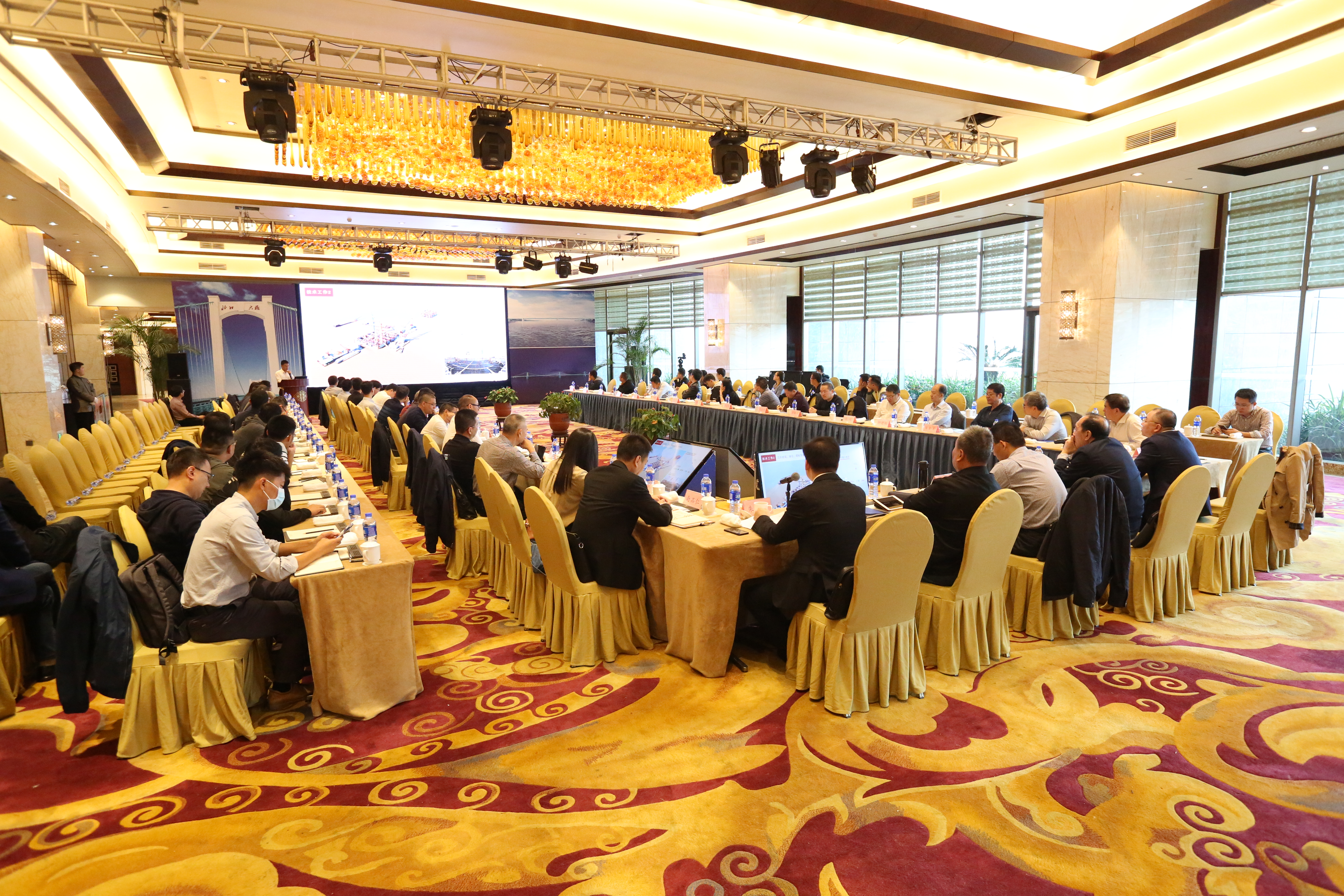 会议上,参建单位对大桥项目超大型沉井基础施工重难点进行了总结,并汇报了上部结构施工技术方案。专家组一致认为方案具有一定的可行性、必要性和前瞻性,并建议参建各方需进一步凝练总结技术成果,开展上部结构安装关键技术专项研究,加强优化,增加试验验证,把控技术方案,做好、做实、做细上部结构施工过程的质量、安全措施,高品质完成温州瓯江北口大桥建设目标。