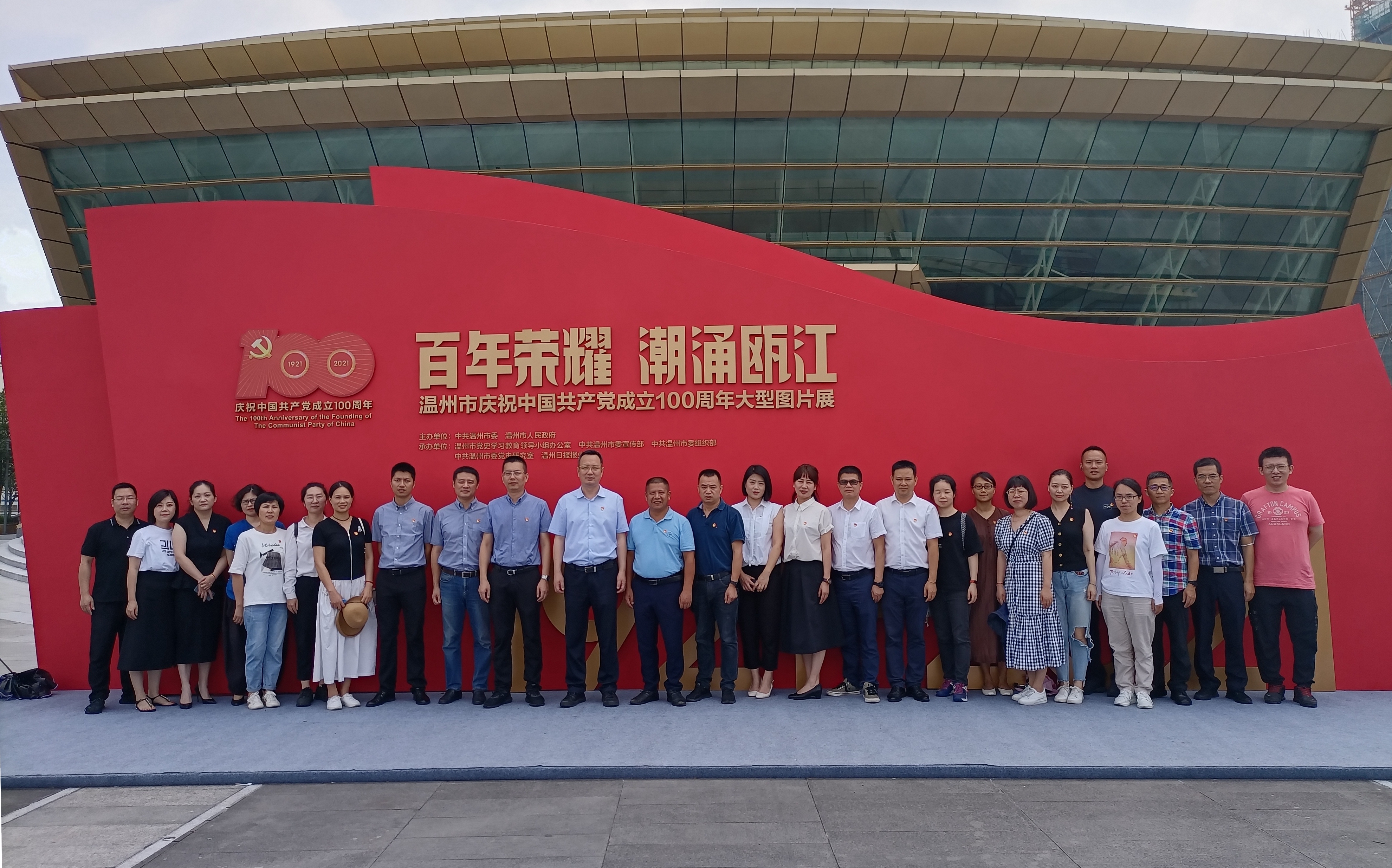 为庆祝中国共产党成立100周年,进一步推进党史学习教育工作走深走实,7月13日上午,集团组织党员干部40余人赴温州大剧院,参观“百年荣耀·潮涌瓯江”温州市庆祝中国共产党成立100周年大型图片展。集团党委副书记周列茅、纪委书记郑书讯、副总经理、总工程师郑锋利等参加活动。