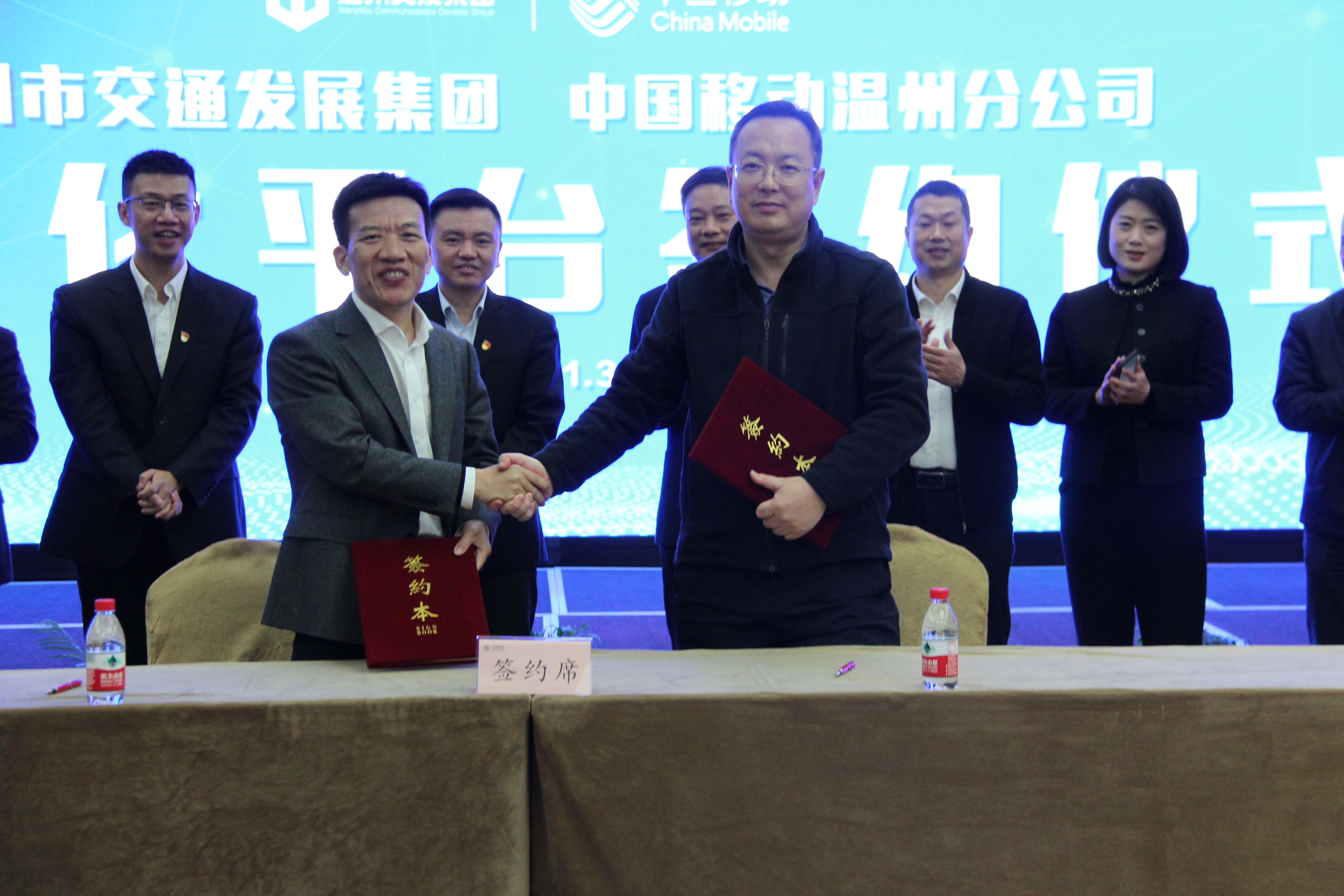 11月30日下午,市交发集团与中国移动温州分公司数字化平台项目合作暨“党建和创”签约仪式在移动公司13楼会议室顺利举行。集团总经理南品仁,党委副书记周列茅,中国移动温州分公司副总经理唐慧明、陈孝云出席仪式,集团办公室、党群工作部、工会等部门相关人员参加。
