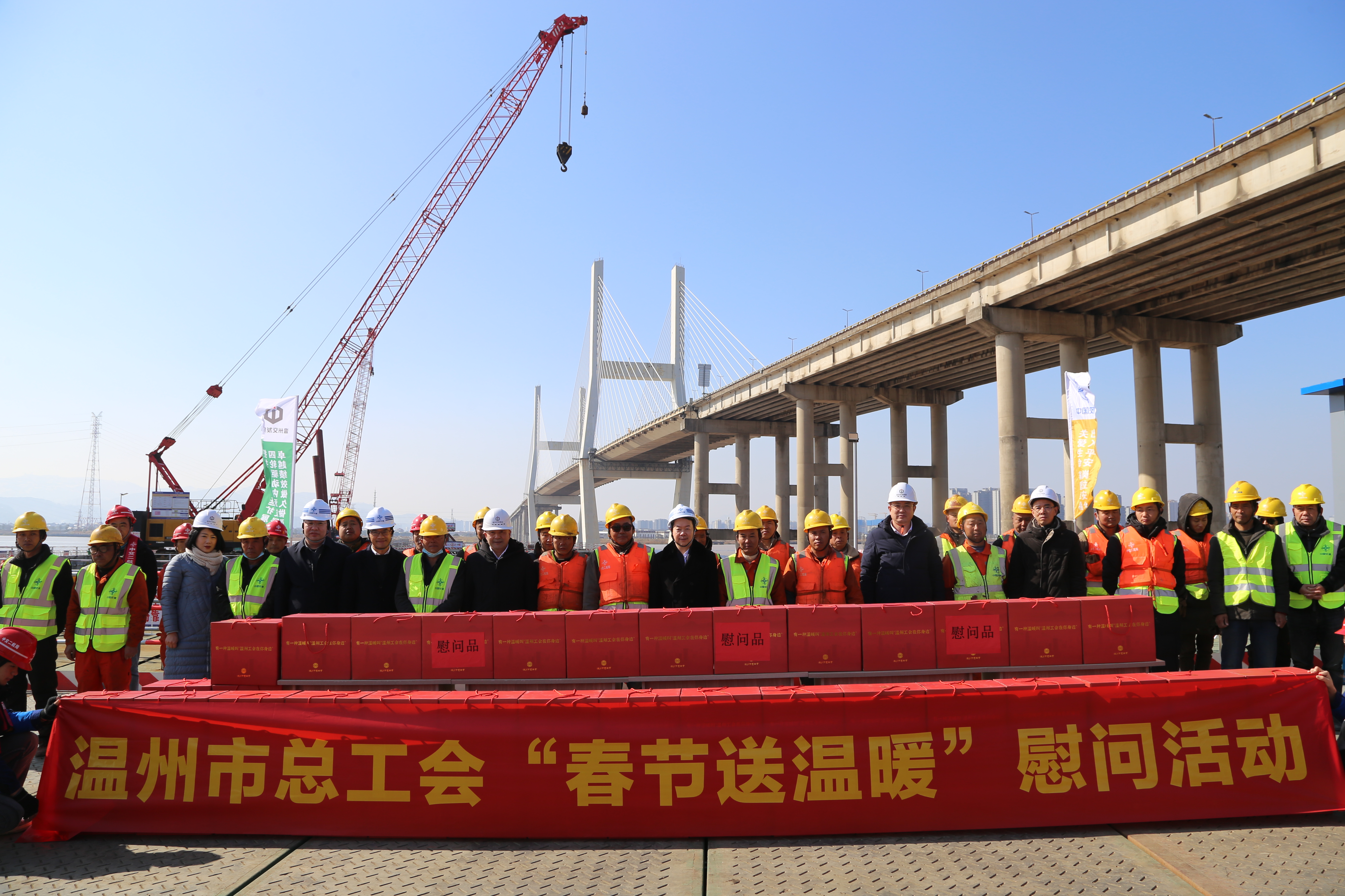 1月24日,温州市总工会党组书记、常务副主席胡长虹带队赴甬台温改扩建工程温州北白象至南白象段开展“两节”慰问活动,市交发集团党委副书记、总经理翁结群,党委副书记周列茅陪同。
