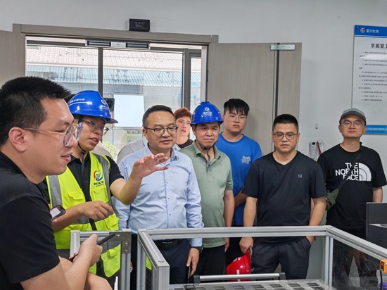 叶剑可一行实地考察了数智建造创新管理中心和智慧车间,现场重点展示了大数据、物联网等技术在安全风险预警、隐患排查治理中的创新应用,详细介绍了自动化生产流程中的安全保障措施。在工地实验室,专业人员对试验设备的安全操作规程执行情况、危险化学品存储管理、试验流程的合规性等方面进行检查。叶剑可对泰顺梁厂安全管理工作给予充分肯定,对现场发现的问题逐一分析、指导,提出切实可行的优化改进方案。