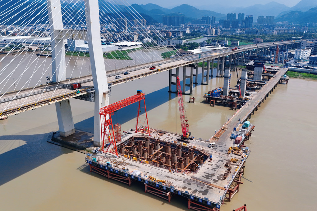 北航道桥沿袭了原大桥的双塔双索面叠合梁斜拉桥设计,主跨布置为135米+270米+135米,完工后将大大拓宽温州南北的交通要道。两座主墩分别为5号墩和6号墩,各包含24根桩基。本工程桩基采用直径2.8米(护筒段)变径至2.5米的变截面超长灌注桩,设计桩长119.5米,最大钻孔深度达130.5米。